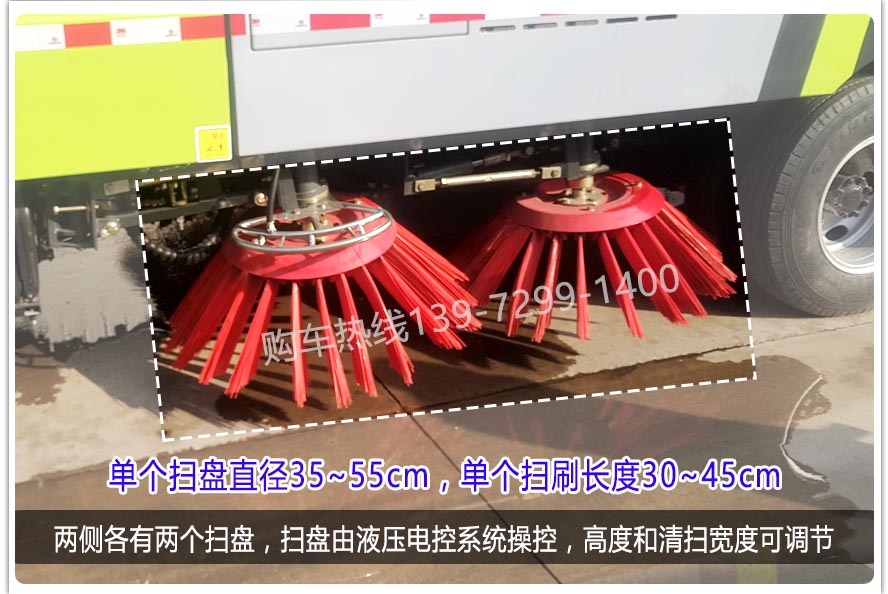 二、上裝配置: 標配掃盤4把;掃盤轉速實現(xiàn)獨立3檔調速;大力馬達;施耐德控件開關;臺灣液壓閥;皖液液壓油泵;新西山水泵;免維護自分離式離合器;免維護風機;不銹鋼水箱;不銹鋼垃圾箱;尾部LED箭頭燈;手動泵應急系統(tǒng);前掃刷臂轉動機構使用高新耐磨工程隔套,免打黃油;精密冷彎無縫液壓油管。